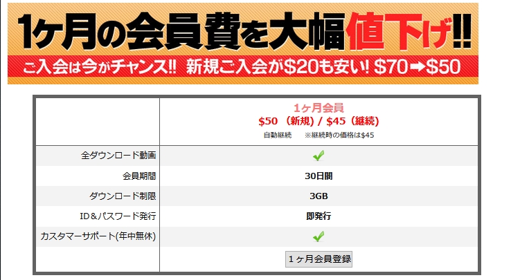 一か月会員登録ボタンをクリックします