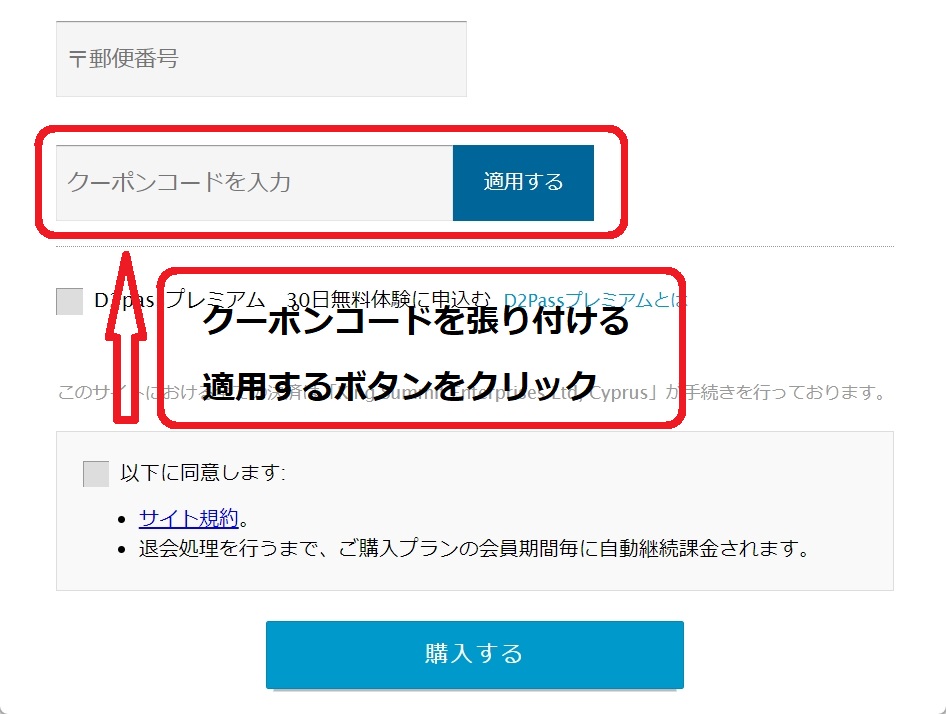 3.入会フォームの下のほうに「クーポンコードを入力」欄があります。